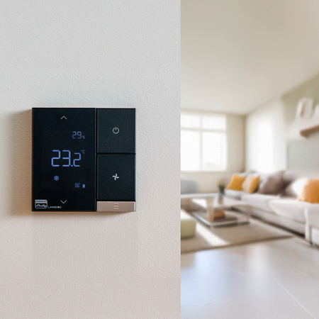 Termostato versatile per il controllo completo dei sistemi HVAC: fan coil, riscaldamento a pavimento, ventilazione e raffreddamento. Compatibile con sensori di temperatura esterni. "Powered by Shelly": per l'automazione intelligente, l'accesso remoto e l'integrazione senza sforzo con le piattaforme più diffuse.