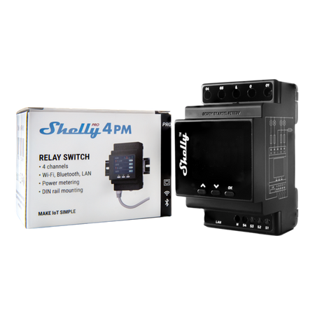 Lo Shelly 4 PRO PM v2 è un interruttore relè su guida DIN a 4 canali con connessione Wi-Fi, LAN e Bluetooth. E’ adatto per il montaggio in un quadro elettrico standard su guida DIN, accanto agli interruttori automatici per controllare e monitorare l’energia elettrica attraverso esso.