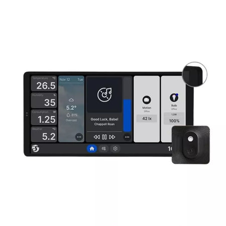 Con un ampio touchscreen a colori da 6,95", questo display per la casa intelligente semplifica il monitoraggio, il controllo e la commutazione dei circuiti, senza sforzo, il tutto da un unico dispositivo elegante e intuitivo. Per un controllo preciso del clima, il dispositivo è ora dotato del sensore Shelly BLU H&T, che garantisce letture accurate di temperatura e umidità per un funzionamento ottimale del termostato.